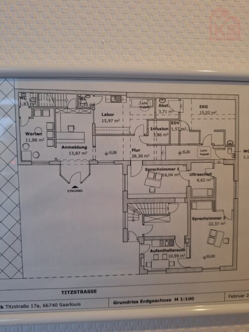 Large office or practice space with a small apartment for rent in Saarlouis City.